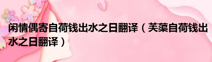 闲情偶寄自荷钱出水之日翻译(芙蕖自荷钱出水之日翻译)