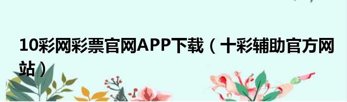 10彩网彩票官网APP下载(十彩辅助官方网站)