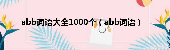 大家好,今天小六子来为大家解答以下的问题,关于abb词语大全1000个,abb词语这个很多人还不知道,现在让我们一起来看看吧!