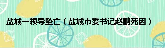 导读 大家好,今天小六子来为大家解答以下的问题,关于盐城一领导坠亡,盐城市委书记赵鹏死因这个很多人还不知道,现在让我们一起来看看吧!1、江