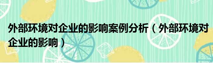 外部环境对企业的影响案例分析(外部环境对企业的影响)