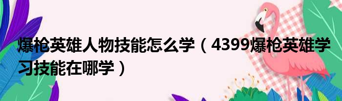 导读 大家好,今天小六子来为大家解答以下的问题,关于爆枪英雄人物技能怎么学,4399爆枪英雄学习技能在哪学这个很多人还不知道,现在让我们一起