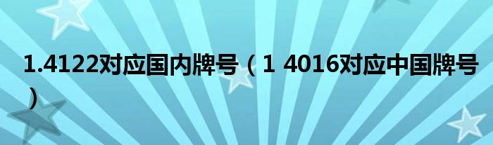 导读 大家好,今天小六子来为大家解答以下的问题,关于1 4122对应国内牌号,1 4016对应中国牌号这个很多人还不知道,现在让我们一起来看看吧!1