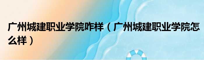 广州城建职业学院咋样(广州城建职业学院怎么样)