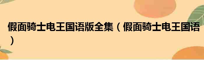 导读 大家好,今天小六子来为大家解答以下的问题,关于假面骑士电王国语版全集,假面骑士电王国语这个很多人还不知道,现在让我们一起来看看吧!1
