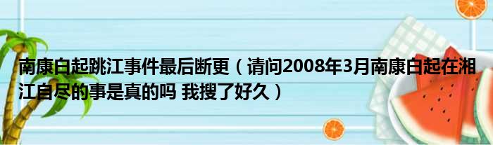 南康白起跳江事件最后断更(请问2008年3月南康白起在湘江自尽的事是真的吗 我搜了好久)