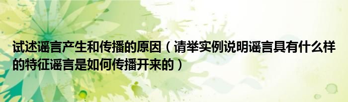 试述谣言产生和传播的原因(请举实例说明谣言具有什么样的特征谣言是如何传播开来的)