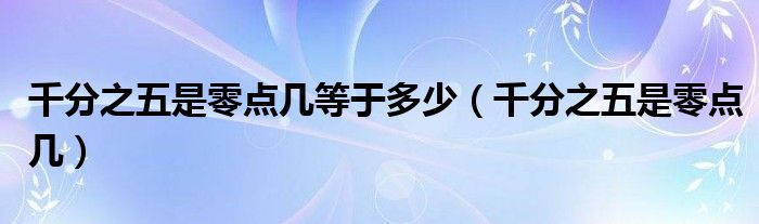 导读 大家好,今天小六子来为大家解答以下的问题,关于千分之五是零点几等于多少,千分之五是零点几这个很多人还不知道,现在让我们一起来看看吧