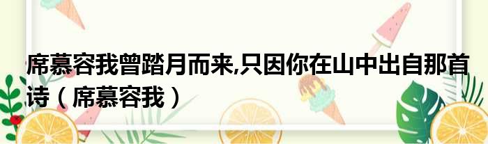 导读 大家好,今天小六子来为大家解答以下的问题,关于席慕容我曾踏月而来,只因你在山中出自那首诗,席慕容我这个很多人还不知道,现在让我们一起