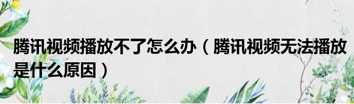腾讯视频播放不了怎么办(腾讯视频无法播放是什么原因)