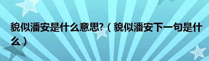 貌似潘安是什么意思?(貌似潘安下一句是什么)