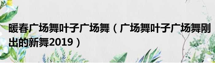 导读 大家好,今天小六子来为大家解答以下的问题,关于暖春广场舞叶子广场舞,广场舞叶子广场舞刚出的新舞2019这个很多人还不知道,现在让我们一