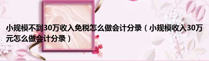 导读 大家好,今天小六子来为大家解答以下的问题,关于小规模不到30万收入免税怎么做会计分录,小规模收入30万元怎么做会计分录这个很多人还不知