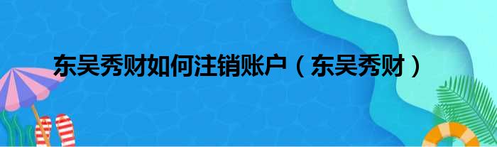 大家好,今天小六子来为大家解答以下的问题,关于东吴秀财如何注销账户,东吴秀财这个很多人还不知道,现在让我们一起来看看吧!