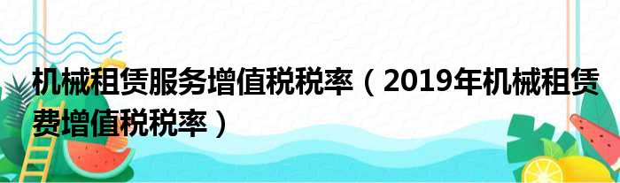 机械租赁服务增值税税率(2019年机械租赁费增值税税率)