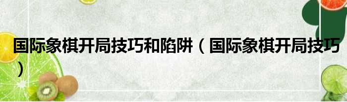 国际象棋开局技巧和陷阱(国际象棋开局技巧)