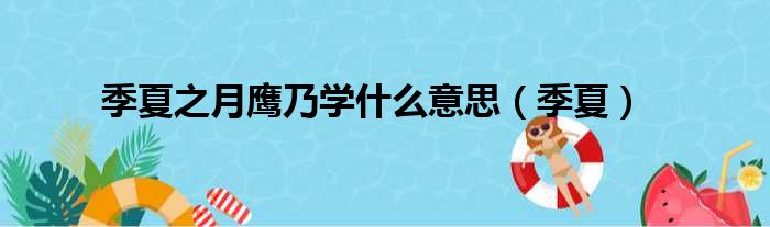 导读 大家好,今天小六子来为大家解答以下的问题,关于季夏之月鹰乃学什么意思,季夏这个很多人还不知道,现在让我们一起来看看吧!1、进入夏季的