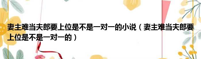 妻主难当夫郎要上位是不是一对一的小说(妻主难当夫郎要上位是不是一对一的)