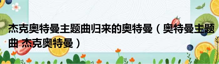 杰克奥特曼主题曲归来的奥特曼(奥特曼主题曲 杰克奥特曼)