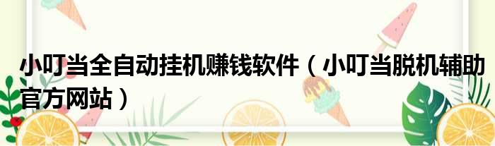 导读 大家好,今天小六子来为大家解答以下的问题,关于小叮当全自动挂机赚钱软件,小叮当脱机辅助官方网站这个很多人还不知道,现在让我们一起来