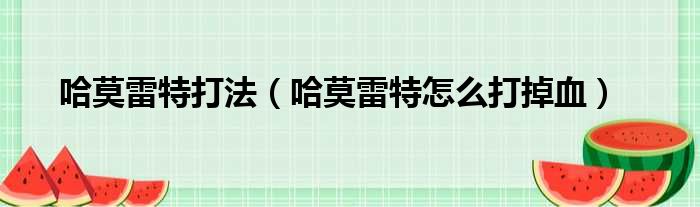 哈莫雷特打法(哈莫雷特怎么打掉血)