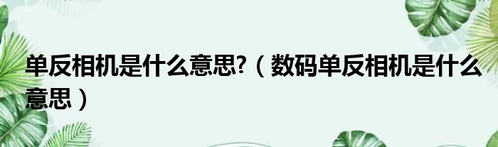 导读 大家好,今天小六子来为大家解答以下的问题,关于单反相机是什么意思?,数码单反相机是什么意思这个很多人还不知道,现在让我们一起来看看吧