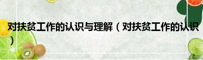 对扶贫工作的认识与理解(对扶贫工作的认识)