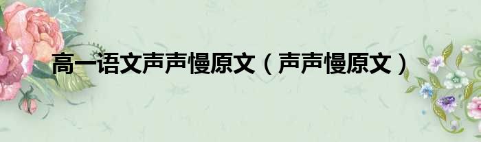 导读 大家好,今天小六子来为大家解答以下的问题,关于高一语文声声慢原文,声声慢原文这个很多人还不知道,现在让我们一起来看看吧!1、声声慢李