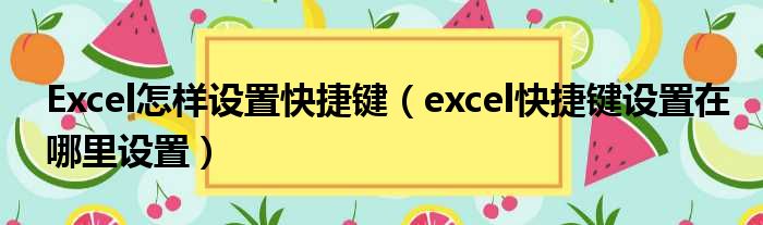 Excel怎样设置快捷键(excel快捷键设置在哪里设置)