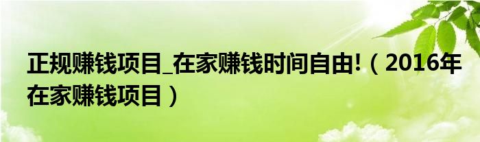 正规赚钱项目_在家赚钱时间自由!(2016年在家赚钱项目)