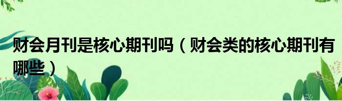 财会月刊是核心期刊吗(财会类的核心期刊有哪些)