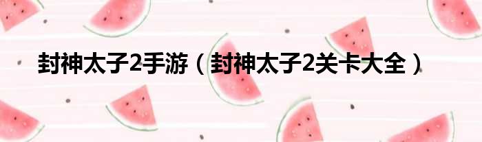 封神太子2手游(封神太子2关卡大全)