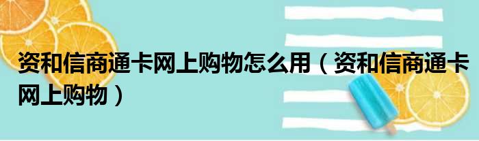 资和信商通卡网上购物怎么用(资和信商通卡网上购物)