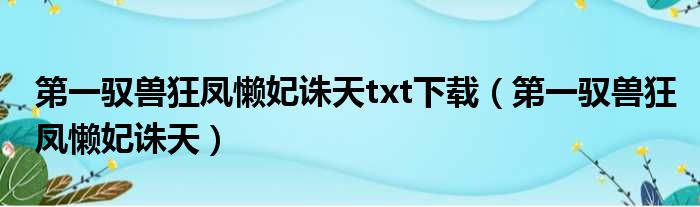 第一驭兽狂凤懒妃诛天txt下载(第一驭兽狂凤懒妃诛天)