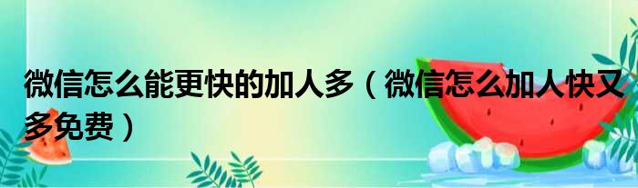 微信怎么能更快的加人多(微信怎么加人快又多免费)