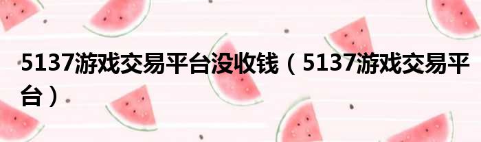 5137游戏交易平台没收钱(5137游戏交易平台)