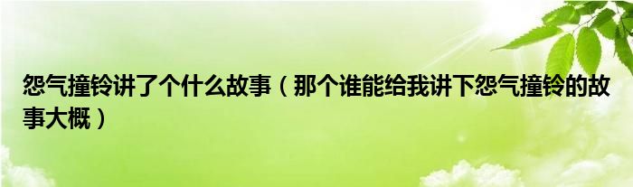 导读 大家好,今天小六子来为大家解答以下的问题,关于怨气撞铃讲了个什么故事,那个谁能给我讲下怨气撞铃的故事大概这个很多人还不知道,现在让
