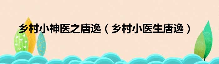 导读 大家好,今天小六子来为大家解答以下的问题,关于乡村小神医之唐逸,乡村小医生唐逸这个很多人还不知道,现在让我们一起来看看吧!1、唐逸虽