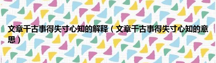 导读 大家好,今天小六子来为大家解答以下的问题,关于文章千古事得失寸心知的解释,文章千古事得失寸心知的意思这个很多人还不知道,现在让我们