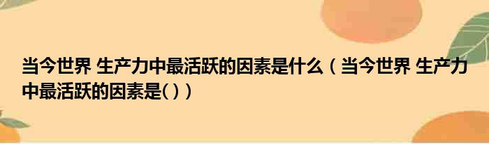 当今世界 生产力中最活跃的因素是什么(当今世界 生产力中最活跃的因素是( ))