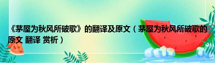 《茅屋为秋风所破歌》的翻译及原文(茅屋为秋风所破歌的原文 翻译 赏析)