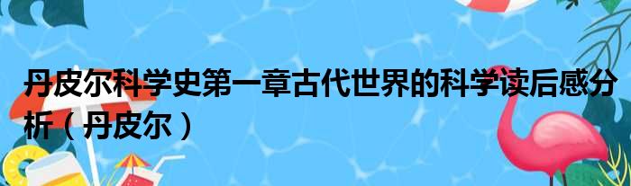 导读 大家好,今天小六子来为大家解答以下的问题,关于丹皮尔科学史第一章古代世界的科学读后感分析,丹皮尔这个很多人还不知道,现在让我们一起
