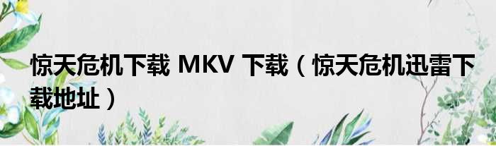 导读 大家好,今天小六子来为大家解答以下的问题,关于惊天危机下载 MKV 下载,惊天危机迅雷下载地址这个很多人还不知道,现在让我们一起来看看