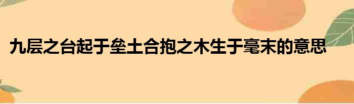 大家好,今天小六子来为大家解答以下的问题,关于九层之台起于垒土合抱之木生于毫末的意思这个很多人还不知道,现在让我们一起来看看吧!