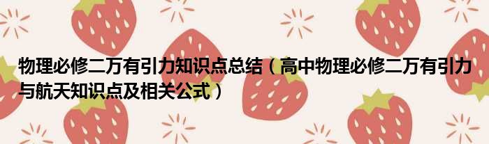 物理必修二万有引力知识点总结(高中物理必修二万有引力与航天知识点及相关公式)