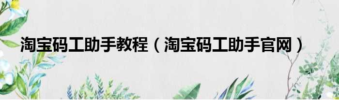大家好,今天小六子来为大家解答以下的问题,关于淘宝码工助手教程,淘宝码工助手官网这个很多人还不知道,现在让我们一起来看看吧!