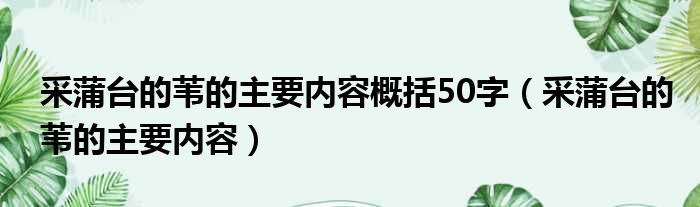 采蒲台的苇的主要内容概括50字(采蒲台的苇的主要内容)