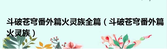 导读 大家好,今天小六子来为大家解答以下的问题,关于斗破苍穹番外篇火灵族全篇,斗破苍穹番外篇火灵族这个很多人还不知道,现在让我们一起来看