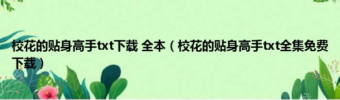 导读 大家好,今天小六子来为大家解答以下的问题,关于校花的贴身高手txt下载 全本,校花的贴身高手txt全集免费下载这个很多人还不知道,现在让