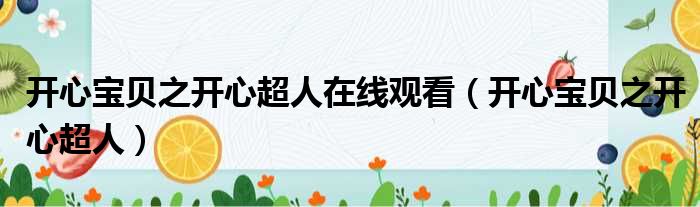 导读 大家好,今天小六子来为大家解答以下的问题,关于开心宝贝之开心超人在线观看,开心宝贝之开心超人这个很多人还不知道,现在让我们一起来看
